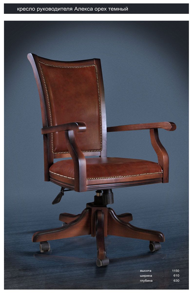 Кресло руководителя должно быть солидным, удобным и как и вся мебель в его офисе выполнена из массива или шпона ценных пород древесины.
