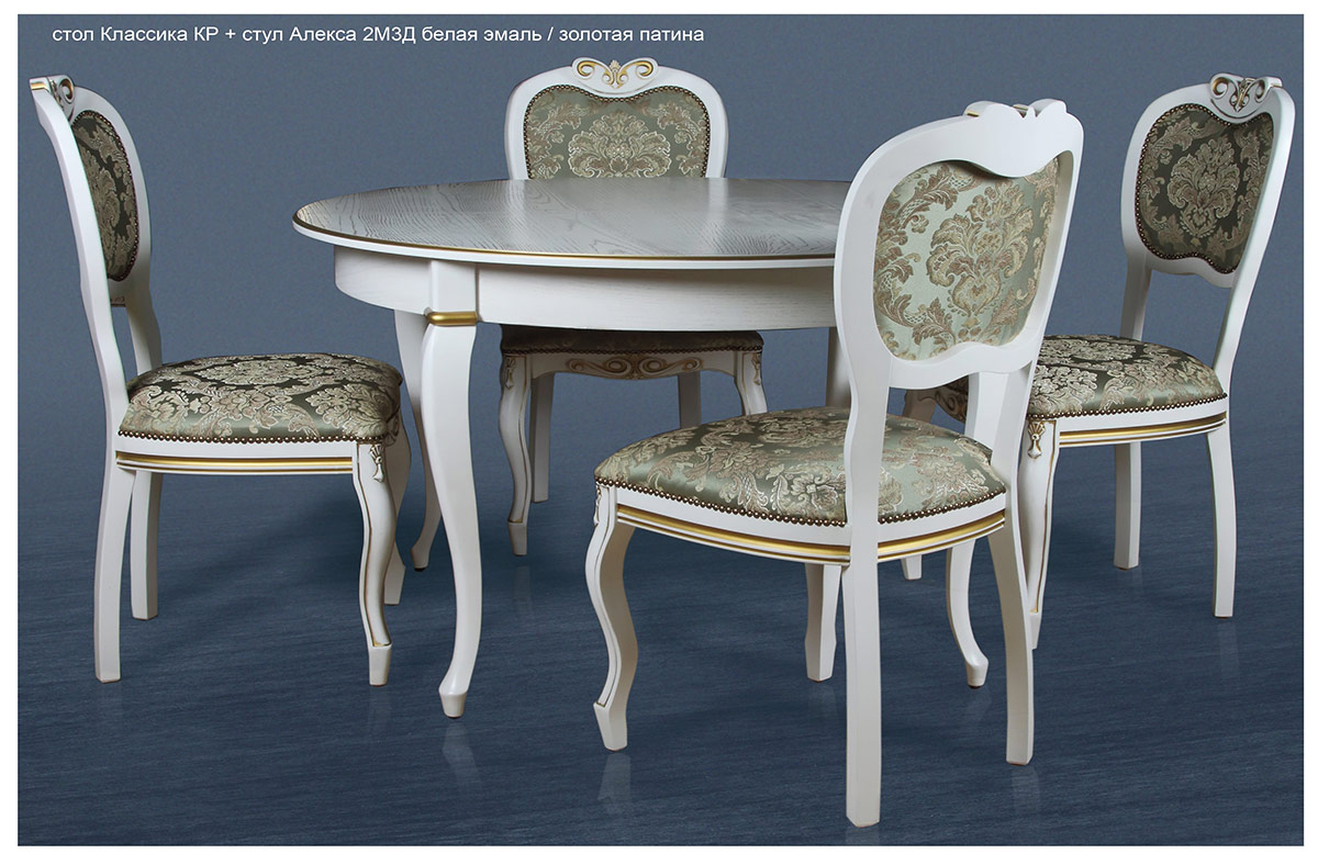 Стол Классика КР + стулья Алекса 3М3Д белая эмаль золотая патина