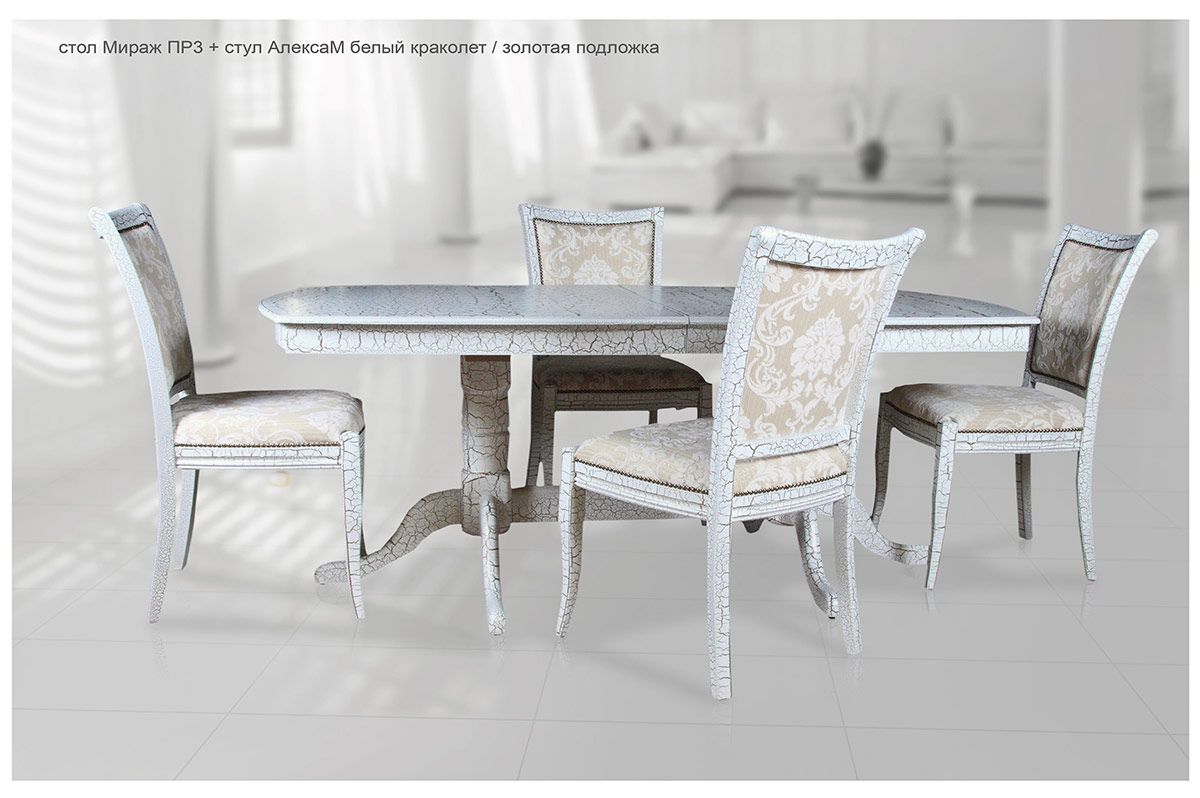 Стол Мираж ПР3 + стул Алекса белый краколет , золотая подложка