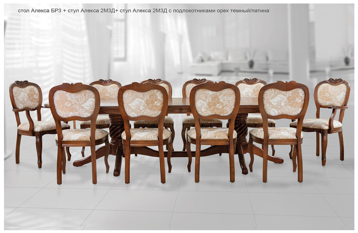 Стол Алекса БР3 + стул Алекса 2М3Д+ стул Алекса 2М3Д с подлокотниками орех темный/патина.