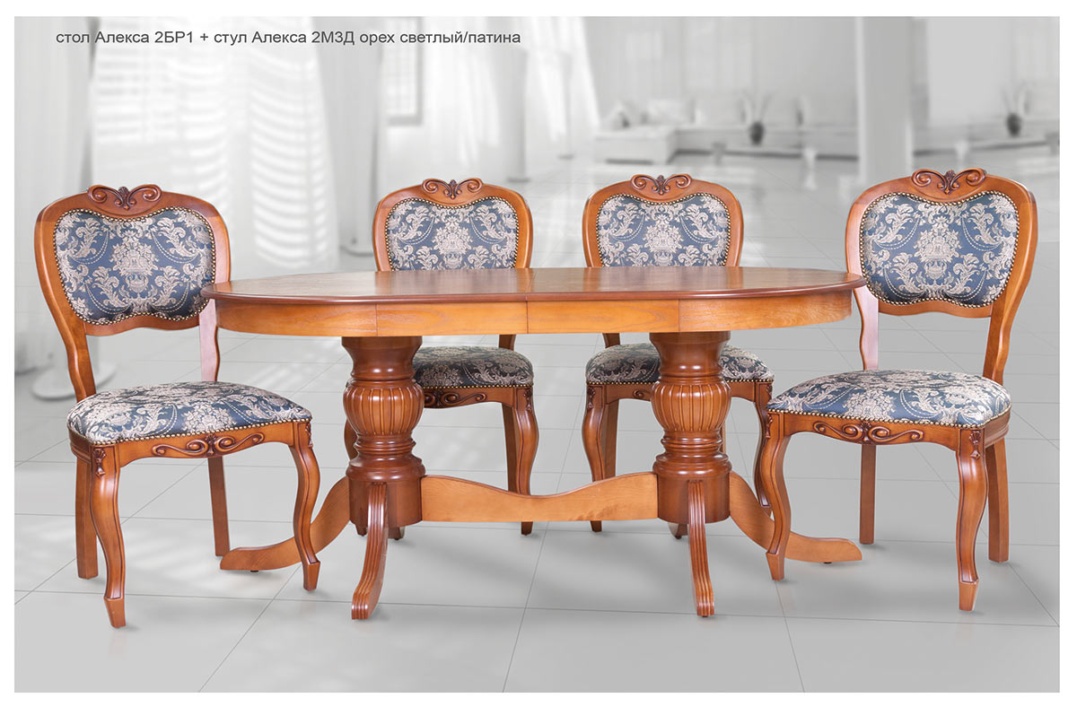 Стол Алекса 2БР1 + стул Алекса 2М3Д орех светлый/патина