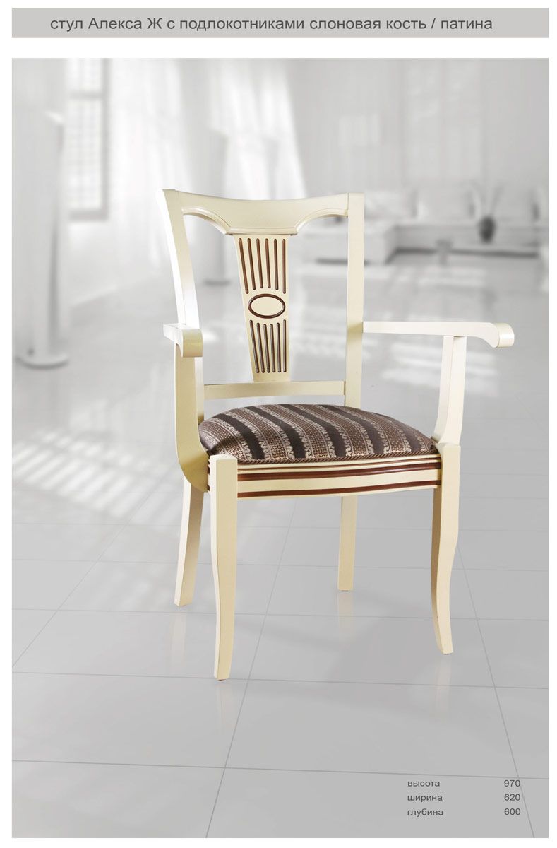 Читать все статьиСтул Алекса Ж с подлокотниками эмаль слоновая кость / патина.