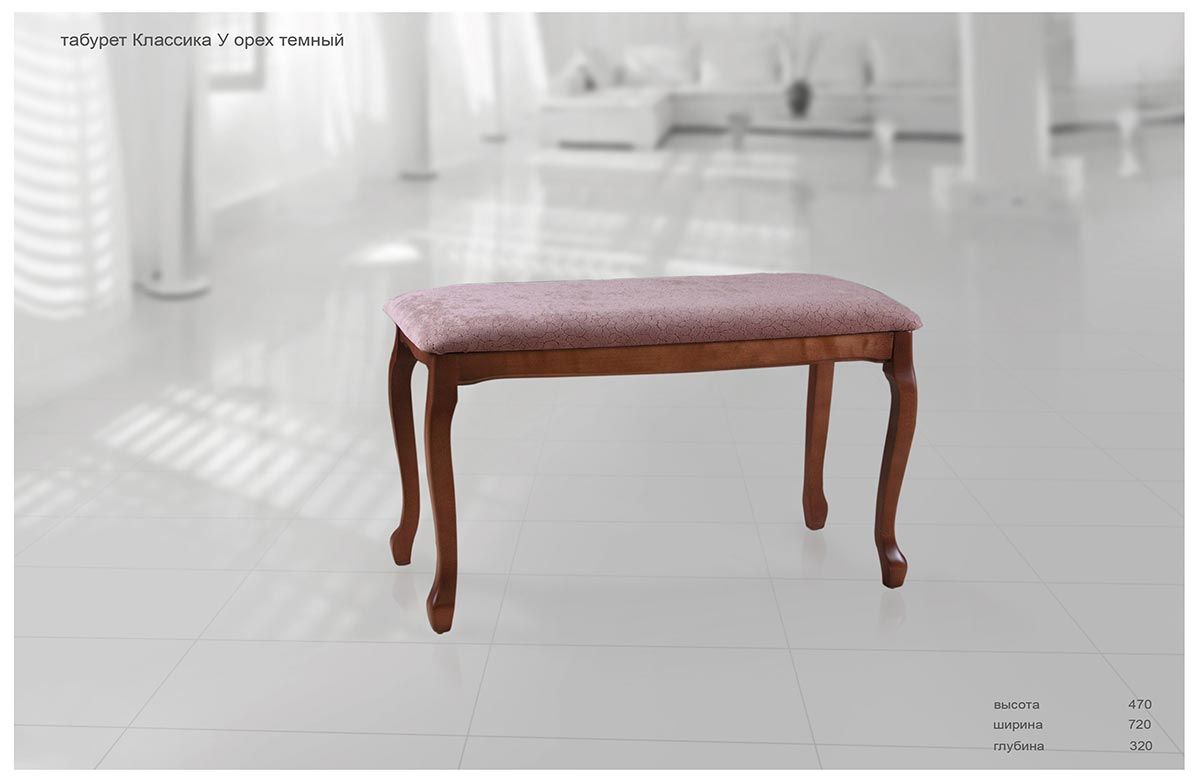 Табурет Классика У изготовлен в классическом исполнении. табурет Классика У обладает удлинённой конструкцией, что позволяет использовать изделие в прихожих, холле, спальне.