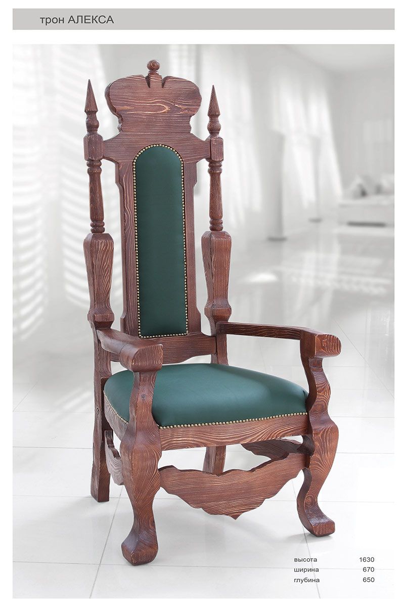 Деревянный трон АЛЕКСА настоящий трон. Старинный трон из исторических иллюстраций украсит ваш загородный дом и будет предметом интереса и зависти ваших гостей. Современные технологии и материалы скроют его недавнее происхождение. Качество изготовления на высоте и соответствует его названию.